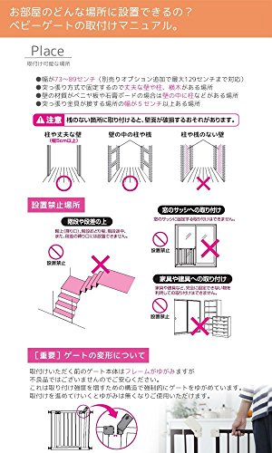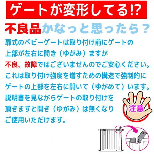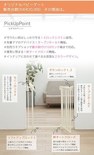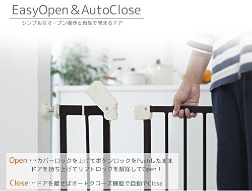 ニューカラーを追加し、大幅リニューアル どんなインテリアにも合わせ易いナチュラルカラーと ちょっと和むチョコレートカラー採用 また、フレームを追加すれば、最大129cmまで取り付けOK シンプルなデザインも取付場所を選びません もちろん充実機能はそのまま 自動で扉が閉まるオートクローズシステム採用 前後両開きタイプなので、使い勝手OK オートクローズ時に自動で上下2箇所のロックがかかりさらに安心のロックカバーがついていています。 ロック解除については、1.ロックカバーを開け → 2.ロックボタンを押し → 3.扉を少し持ち上げる この3つで解除されるので、誤開閉いたしません。 新機能としては、90度以上にすると、扉を開いた状態でお使いいただけます。 ママパパには、結構ご要望あるんですよね。 【商品について】 ※階段上、強度の弱い壁へご使用は不可となります。 ※77cm幅以下への取り付けは本体に表示の取り付け方法で楽に設置ができます。