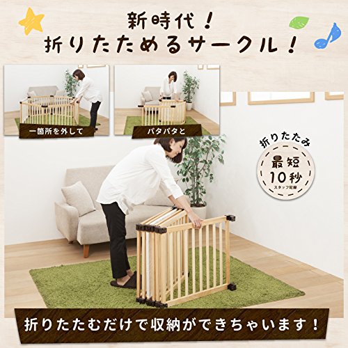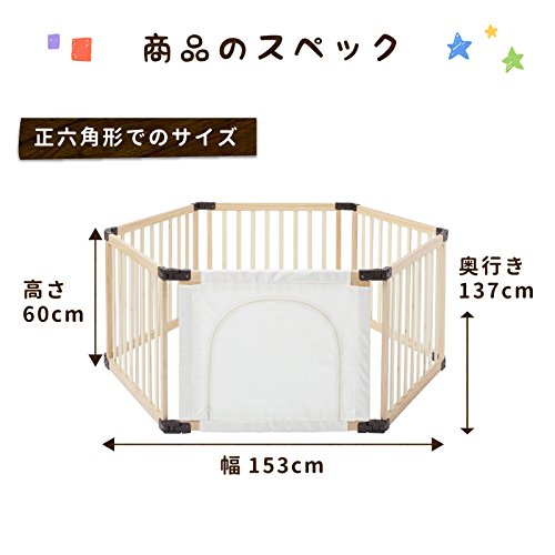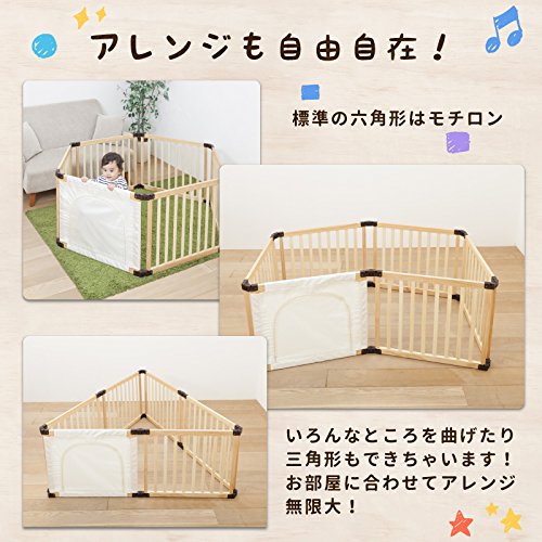 全く新しい折りたためるベビーサークルが日本育児から登場! 新設計の接続パーツでアレンジ自由自在!標準の正六角形から長方形、さらには三角形といろんな形ができる! お子様用出入り口には布製のくぐるっとドアが標準で付属!みんなが楽しく遊べるベビーサークルです! サークルの高さはまたげる60cm!お母さんでもラクラクまたぐことができます!