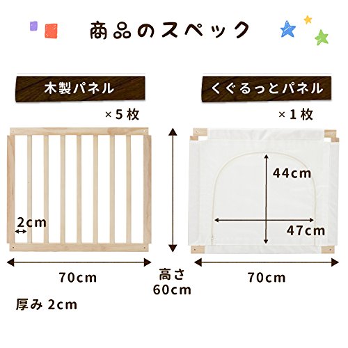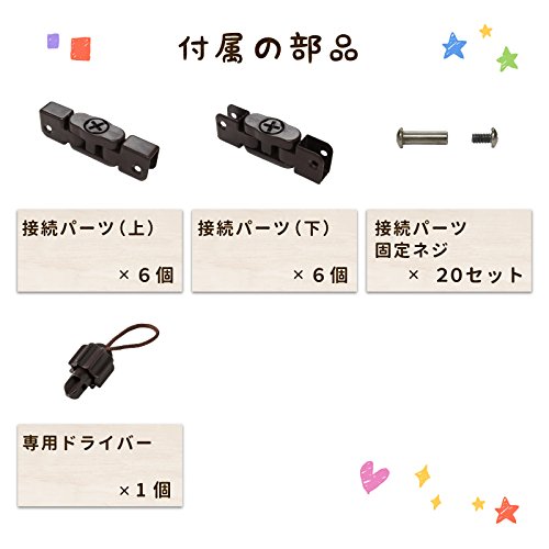 - セット内容 木製パネル×5枚(ピン付きパネル×2、通常パネル×3)、くぐるっとパネル×1、接続パーツ(上)×6、接続パーツ(下)×6、固定ネジ×20セット、専用ドライバー×1