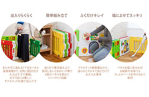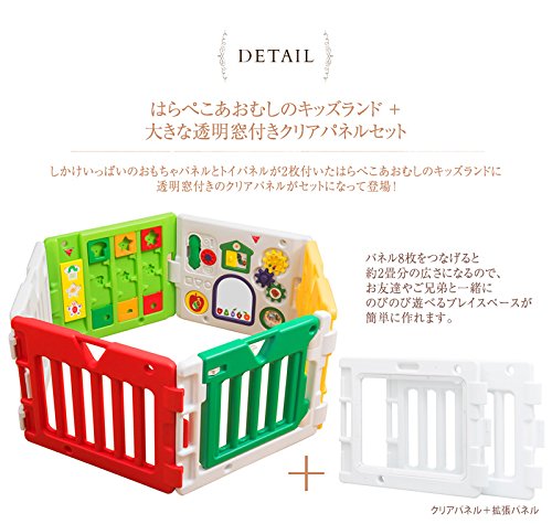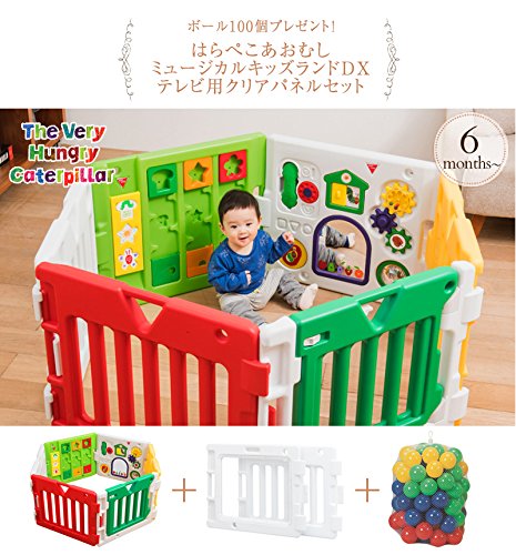 備考:★しかけいっぱいのおもちゃパネルとトイパネルが2枚付いたはらぺこあおむしのキッズランドに大きな透明窓付きのクリアパネルが付いたセット。 パネル8枚をつなげると約2畳分の広さになるので、お友達やご兄弟と一緒にのびのび遊べるプレイスペースが簡単に作れます。 今ならキッズランドの中で遊べるボール100個プレゼント。 ≪おもちゃパネル≫