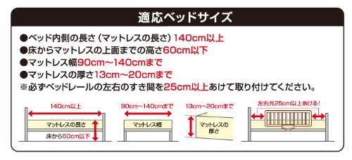 ※必ずベッドレールの左右の隙間を25cm以上あけて取り付けてください。