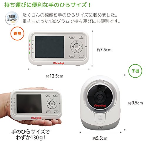 ・親機は軽量コンパクトで持ち運びに便利。いつでもお子様の様子を確認できます。