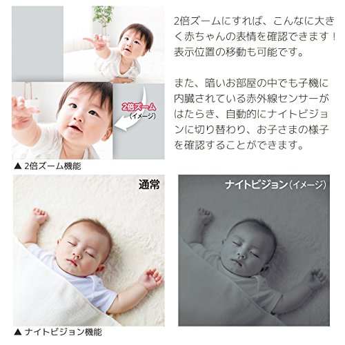 ・赤ちゃんの表情を確認できるズーム機能付。表示位置の移動も可能です。