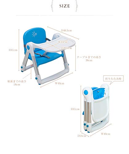 サイズ:本体:約W40×D46.5×H41cm、折りたたみ時:約W40×D14×H41㎝ 座面までの高さ:18cm テーブルまでの高さ :36cm ガード使用時:約W40×D37×H41㎝ トレー:約W33×D20.5cm(うで入り奥行約27cm) 座面の大きさ:約W26.5×D23cm 座面までの高さ:約18cm