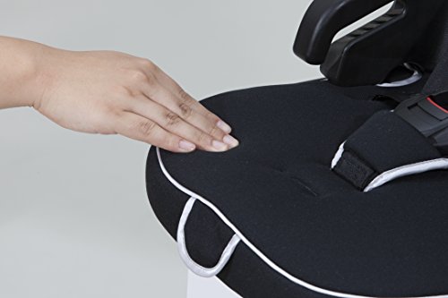 ・装着時の安定性を高める折りたたみ式座面。万が一の衝撃からお子さまの大切な頭部を守る大型のヘッドレストサポート。
