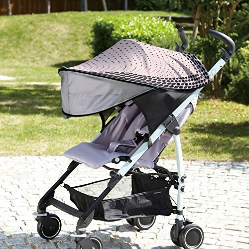 ◆ベビーカー内の温度を12度下げるシェード◆ ☆クールシェードは光のエネルギーが熱に変換しにくいので、木陰にいるような涼しさを感じられます。☆UPF50+で赤ちゃんを紫外線から守ります。☆シルバーとブラックのリバーシブル仕様☆ベビーカーのフードの上にかぶせてストラップを巻きつけて取り付けますので、フードがあれば、ほとんどのベビーカーに取り付けられます。