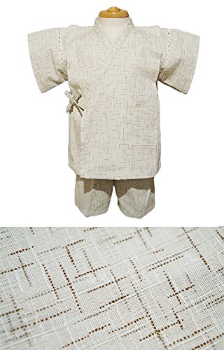 【本体綿100%】【日本製】2016年 夏物 絣柄 甚平スーツ ベージュ◇100cm