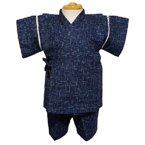 【本体綿100%】【日本製】2016年 夏物 絣柄 甚平スーツ ネイビー◇100cm