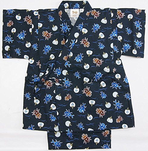 男の子甚平 2才・3才 白・紺・水色 じんべい 和 装夏用 安心日本製 仕立上がり品 (90cm, 紺色カブトムシ)