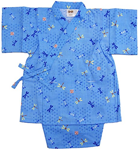 男の子甚平 2才・3才 白・紺・水色 じんべい 和 装夏用 安心日本製 仕立上がり品 (90cm, 水色とんぼ)