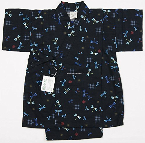男の子甚平 1才・2才・3才 白・紺色 トンボ柄 じんべい 和 装夏用 安心日本製 仕立上がり品 (95cm, 紺)