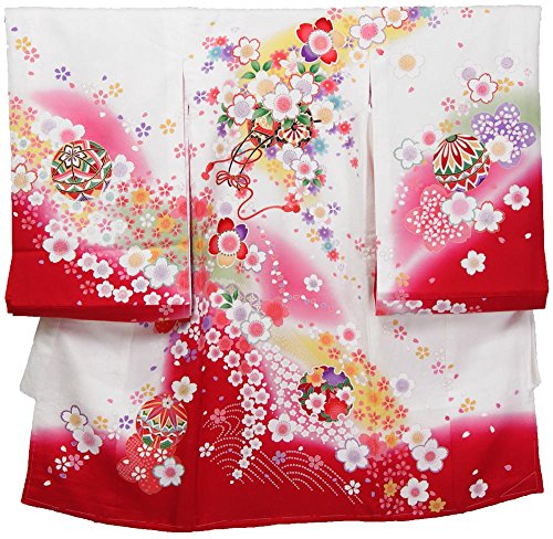 【送料無料】お宮参り初着 京友禅柄 白地に赤色ぼかし裾の新古典調 花車/花のかわいい柄 仕立上り 下着付赤ちゃん着物。白地に京友禅の古典とモダン柄の融合で上品な感じに仕上がった柄です裾が明るい赤色のぼかし。 正絹に花柄の地紋入りの重厚なしっかりとした生地の白色 サイズ:身丈96cm 袖丈 56cm 裄 45cm 素材:着物表・絹 胴裏・ポリエステル 下着・ポリエステル 日本製