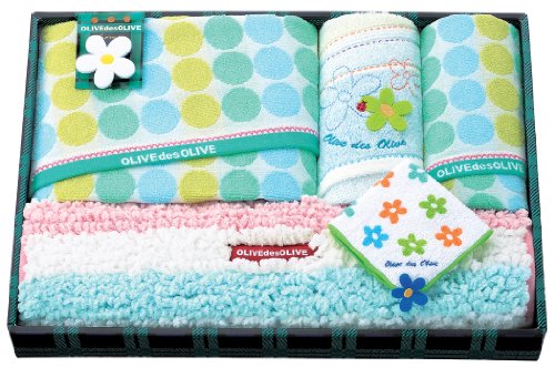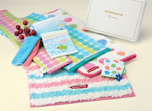 日繊商工 OLIVEdesOLIVE home デイジー ギフトセット (バス・フェイス2枚・タオルチーフ・バスマット) ブルー OD-4051