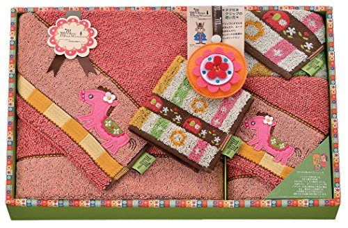 - [本体サイズ] バスタオル/約60×120cm、フェイスタオル/約34×80cm、ウォッシュタオル/約34×34cm、タオルチーフ/約23×23cm、タグ付きクリップ/約10cm