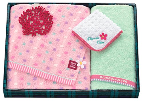 日繊商工 OLIVEdesOLIVE home カリーノ (バス・フェイス2枚・タオルチーフ・バスマット・コースター) ピンク OD-4071