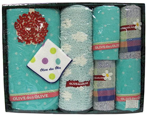 日繊商工 OLIVEdesOLIVE home カリーノ (バス・フェイス4枚・タオルチーフ・バスマット・コースター) ブルー OD-5071