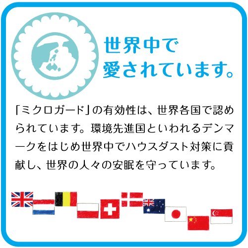 「ミクロガード」の有効性は、世界各国で認められています。環境先進国といわれるデンマークをはじめ、世界中でハウスダスト対策に貢献し、人々の安眠を守っています。