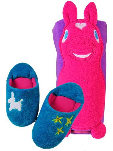 - ひざ掛け(人形タイプ)、ルームシューズのセットです。キュートな箱に入っています。