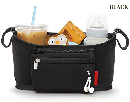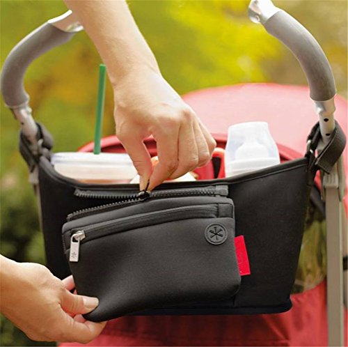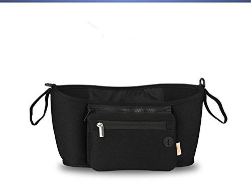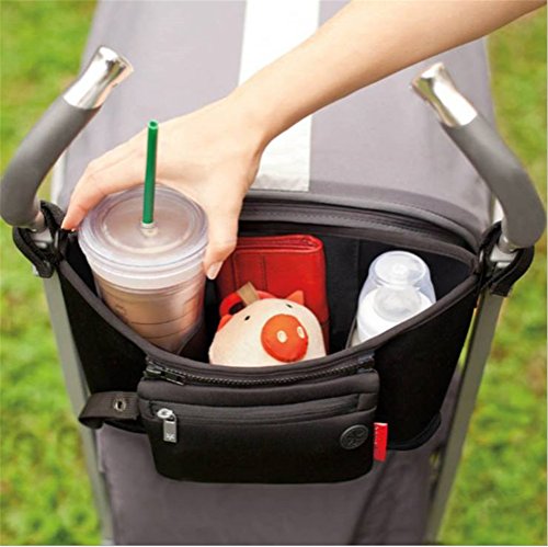 Taurau.C ベビーカー ドリンク ホルダー ネット バッグ 多機能 小物入れ 収納 ベビーとのお出かけに便利♪ たっぷり収納できる多機能バッグ (Black)