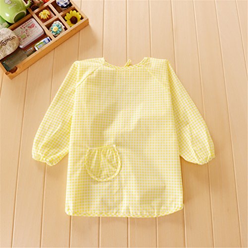 ベビー 長袖 エプロン 子供 幼児 スモック 食事用 ポケット付き 全3色 1歳 2歳 黄