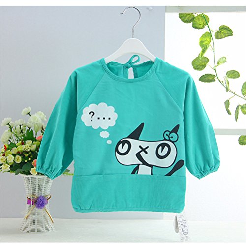 幼児 子供 エプロン ベビー 長袖 エプロン 防水 食事用 お絵かき用 泥遊び用 入園 保育園用 ネコ 6ヶ月-1歳 Green