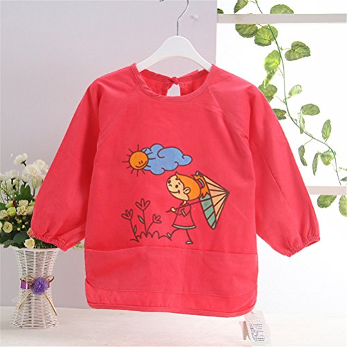 幼児 子供 エプロン ベビー 長袖 エプロン 防水 食事用 お絵かき用 泥遊び用 入園 保育園用 傘 6ヶ月-1歳 Red
