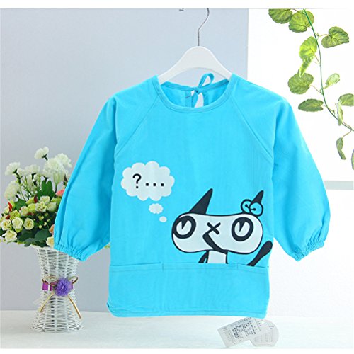 幼児 子供 エプロン ベビー 長袖 エプロン 防水 食事用 お絵かき用 泥遊び用 入園 保育園用 ネコ 1.5歳-2歳 Blue