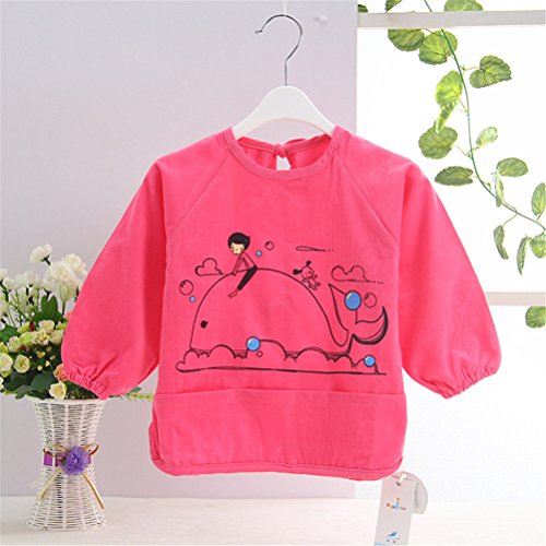 幼児 子供 エプロン ベビー 長袖 エプロン 防水 食事用 お絵かき用 泥遊び用 入園 保育園用 ホエール 1歳-1.5歳 Red
