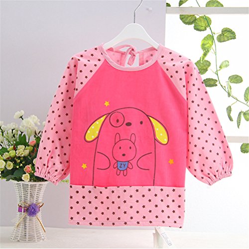 幼児 子供 エプロン ベビー 長袖 エプロン 防水 食事用 お絵かき用 泥遊び用 入園 保育園用 ウサギ 1.5歳-2歳 Red