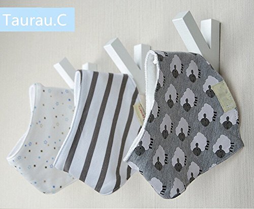 Taurau.C 三層 コットン 赤ちゃんのトライアングルよだれかけ 3枚組セット (Sheep)