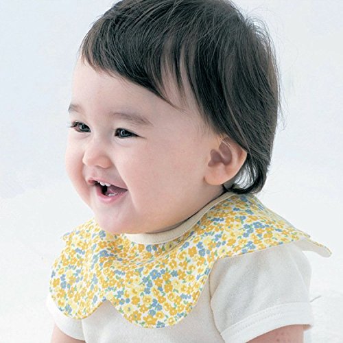 Taurau.C 4つ 層 360° 回転 よだれかけ ビブ ベビー BABY 出産祝い 食事 エプロン お洒落 派手 ハデ カワイイ (黄色の花柄)