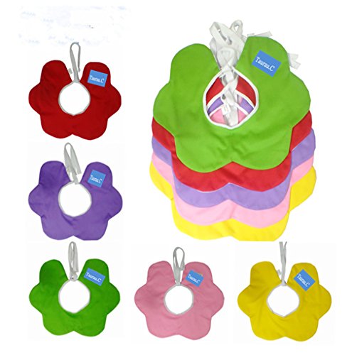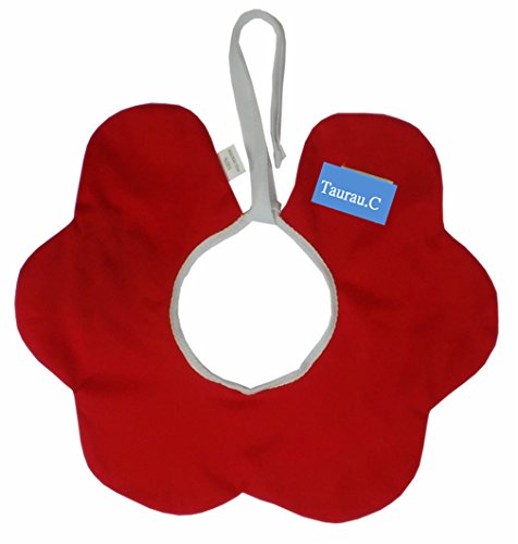 防水 よだれかけ コットンビブ 食事 360° 回転 エプロン お洒落 Flower 赤