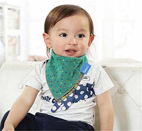 Taurau.C ハンカチがスタイに変身♪かわいいハンカチスタイ 可愛いリバーシブル ベビーの肌に優しいガーゼ素材 大きいサイズ スタイ 三角スタイ よだれかけ オリジナルスタイ (Green)