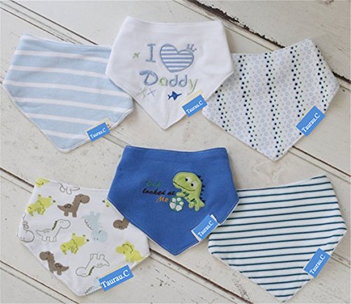Taurau.C おしゃれ かわいい 三角 バンダナ コットン スタイ エプロン 6枚 セット クリアランスにセール、価格がやすいです,30日間に品質を保証します (I Love Daddy & Dinosaur)