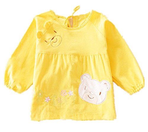 ベビー 長袖 エプロン 子供用幼児用スモック花とクマ 柄 幼稚園 保育園 (XXL, 黄色)