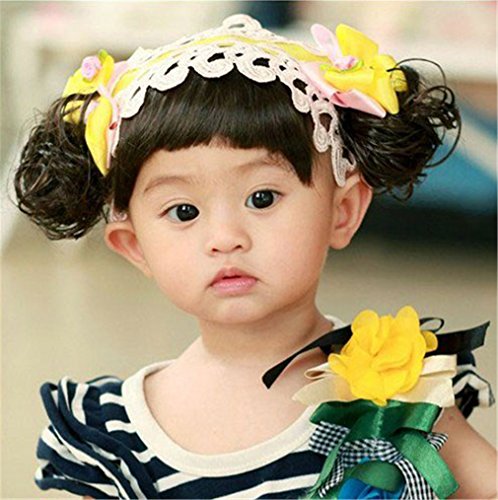 新生児 赤ちゃん 髪飾り 帽子 かつら ウィッグ 付き ベビー&キッズ ベビー ヘアバンド 伸縮性がある (1)