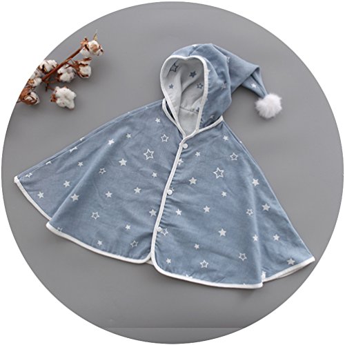 マント フード付き ベビーバスローブ おくるみ 6重ガーゼ 保温性 ふわふわガーゼ 通気性 お洒落 スター グレー