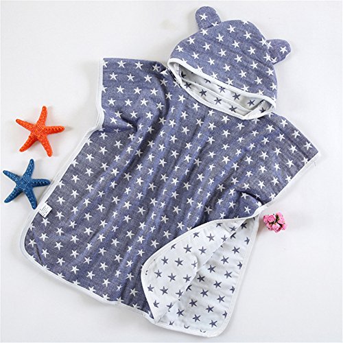 マント フード付き ベビーバスローブ おくるみ 4重ガーゼ 保温性 通気性 お洒落 ふわふわガーゼ ベア ブルー