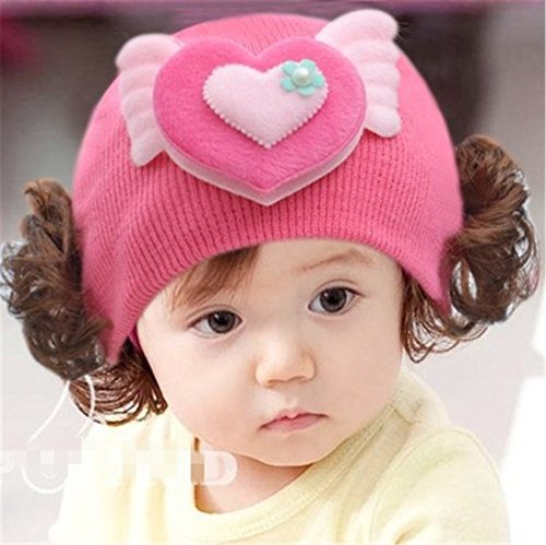 ニット帽 赤ちゃん 3カ月 ~ 4歳 子供ハット かつら ウィッグ 付き 新生児 お洒落 伸縮性がある ヘアバンド ヘアアクセサリー 出産祝い プレゼント 写真小道具 ,エンジェル (ピンク)