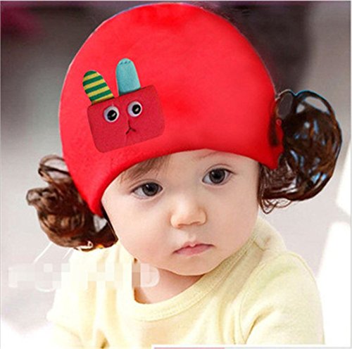 ニット帽 赤ちゃん 3カ月 ~ 4歳 子供ハット かつら ウィッグ 付き 新生児 お洒落 伸縮性がある ヘアバンド ヘアアクセサリー 出産祝い プレゼント 写真小道具, ロボット ウサギ レッド