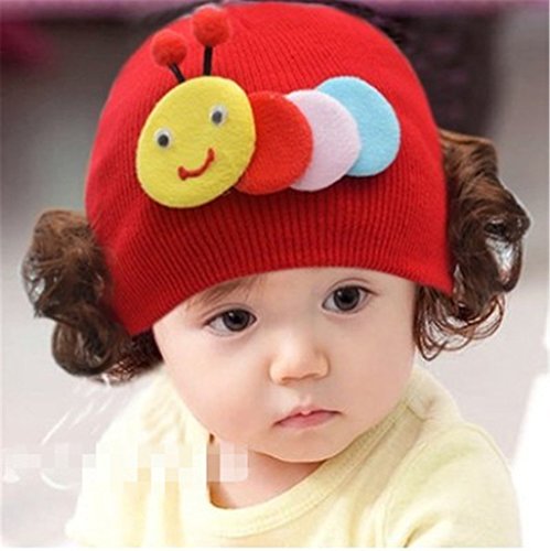 ニット帽 赤ちゃん 3カ月 ~ 4歳 子供ハット かつら ウィッグ 付き 新生児 お洒落 伸縮性がある ヘアバンド ヘアアクセサリー 出産祝い プレゼント 写真小道具, かわいい昆虫 レッド