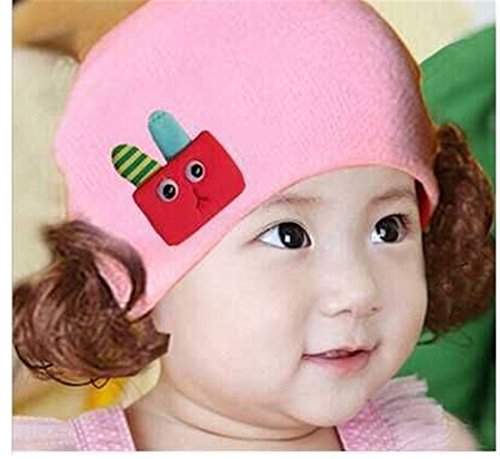 ニット帽 赤ちゃん 3カ月 ~ 4歳 子供ハット かつら ウィッグ 付き 新生児 お洒落 伸縮性がある ヘアバンド ヘアアクセサリー 出産祝い プレゼント 写真小道具, ロボット ウサギ ピンク