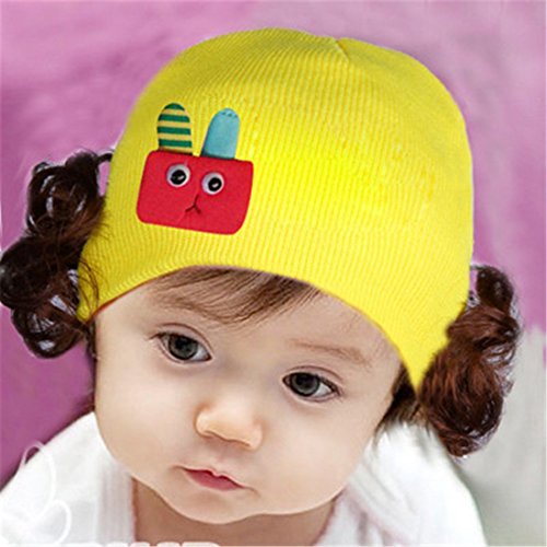 ニット帽 赤ちゃん 3カ月 ~ 4歳 子供ハット かつら ウィッグ 付き 新生児 お洒落 伸縮性がある ヘアバンド ヘアアクセサリー 出産祝い プレゼント 写真小道具, ロボット ウサギ イエロー