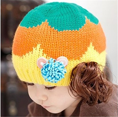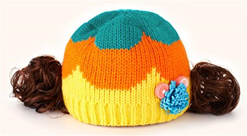 ニット帽 赤ちゃん 5カ月 ~ 3歳 子供ハット かつら ウィッグ 付き 新生児 お洒落 伸縮性がある ヘアバンド ヘアアクセサリー 防寒防風対策 出産祝い プレゼント (Yellow)