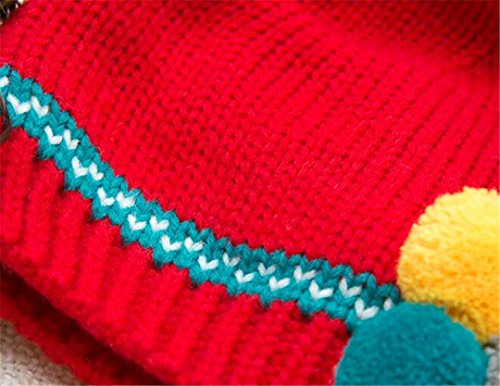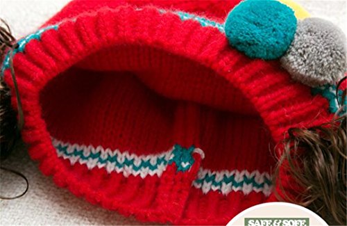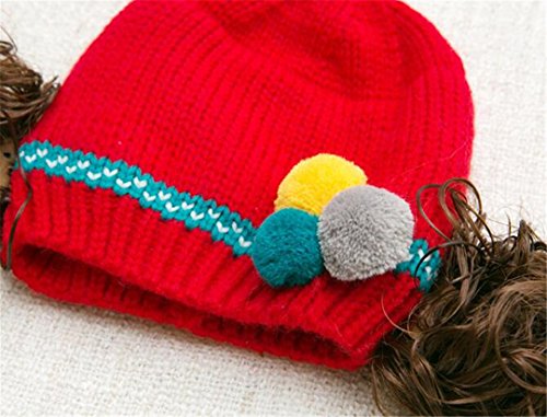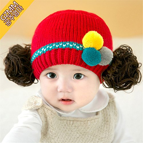 ニット帽 赤ちゃん 5カ月 ~ 3歳 子供ハット かつら ウィッグ 付き ポンポン 伸縮性がある ヘアバンド ヘアアクセサリー 防寒防風対策 出産祝い プレゼント (Red)