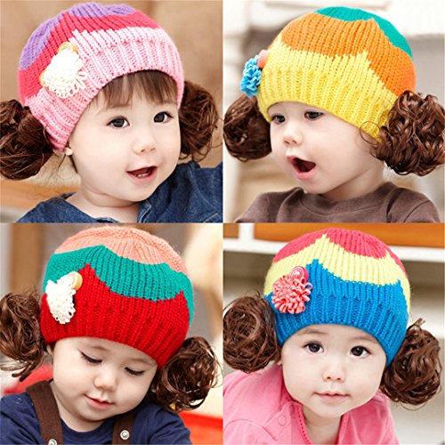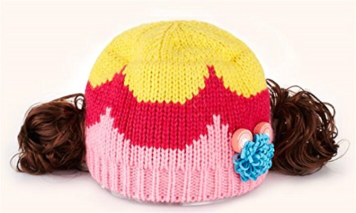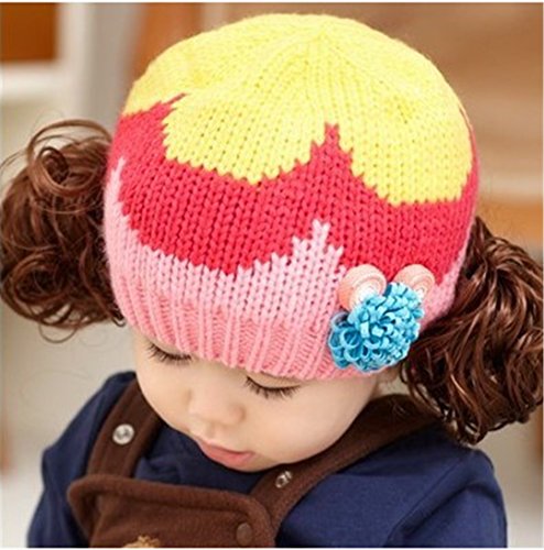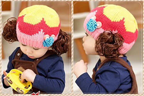 ニット帽 赤ちゃん 5カ月 ~ 3歳 子供ハット かつら ウィッグ 付き 新生児 お洒落 伸縮性がある ヘアバンド ヘアアクセサリー 防寒防風対策 出産祝い プレゼント (Rose)