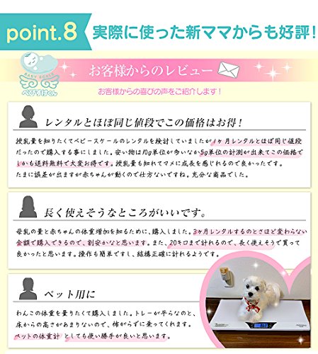 最少5g単位で測定できるため、赤ちゃんの小さな成長も見逃しません。