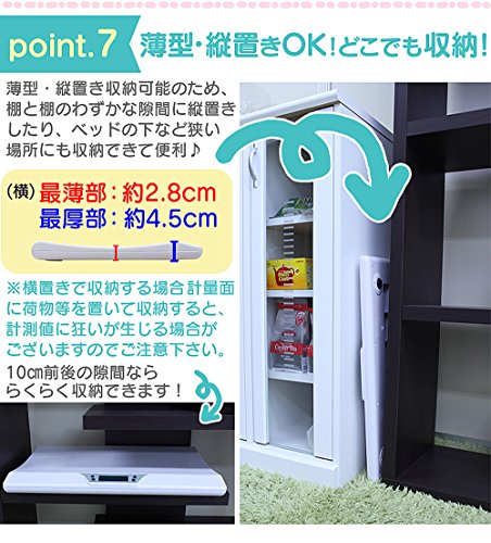 片手でも持てる薄型・軽量タイプで棚と棚の間に縦置きしたり、ベッドの下のわずかな隙間にも収納できて場所を取りません。