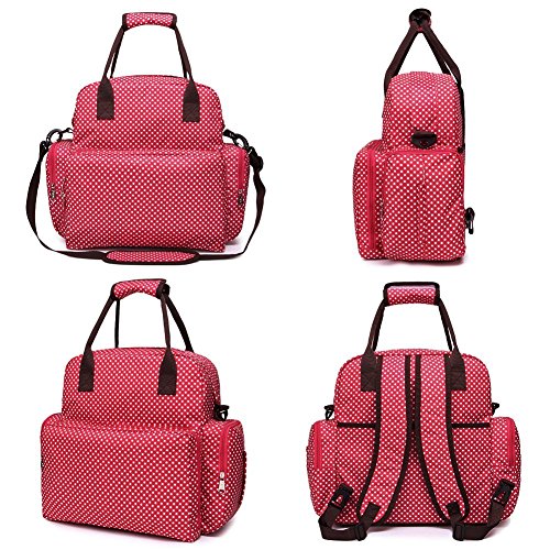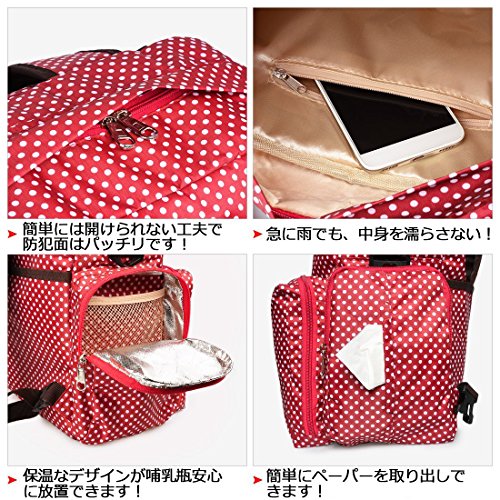マザーズバッグ 軽量 大容量 リュック 多機能 ショルダー トートバッグママバッグ 人気 マザーズバッグ オムツ替えシート付 防水 (赤い)