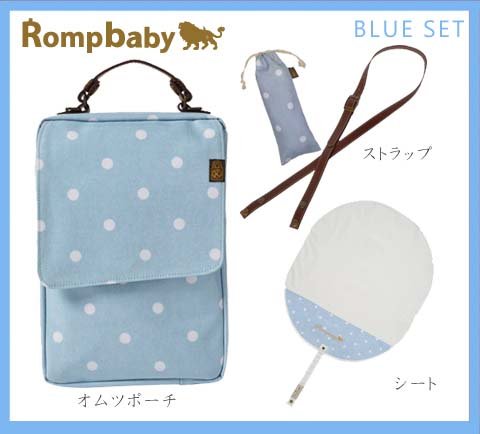 Rompbaby(ロンプベイビー) 「究極のオムツポーチ おむつ替えシート・ショルダーストラップ付 3点セット 」 【「グッドデザイン賞」「キッズデザイン賞」受賞】 (ブルー)